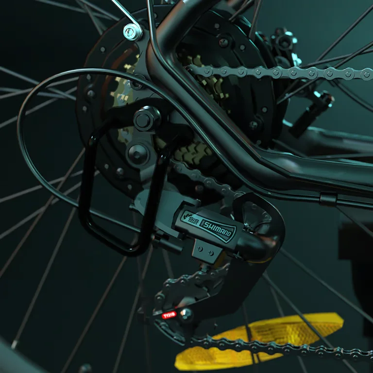 - [Base de chaîne SHIMANO à 7 vitesses] Faites l’expérience d’un changement de vitesse fluide avec notre dérailleur Shimano à 7 vitesses sensible et notre chaîne KMC antirouille. Adaptez rapidement votre style de conduite sur des pentes raides ou sur un terrain plat et obtenez un élan optimal grâce à l’assistance au pédalage électrique.